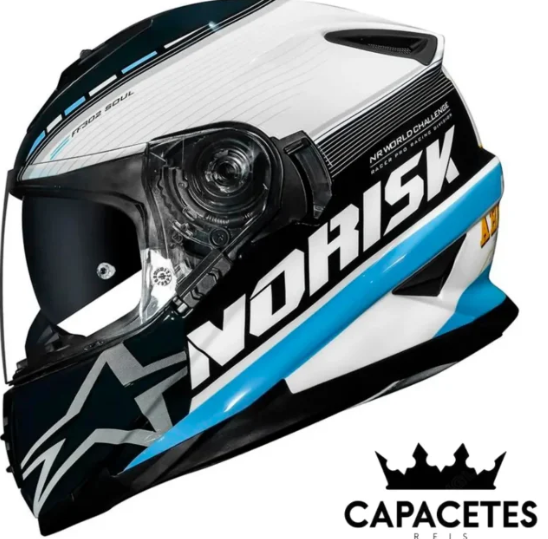 R$349,50 Em até 12x de R$35,09Capacete Norisk FF302 Soul Grand Prix USA – Branco/Azul