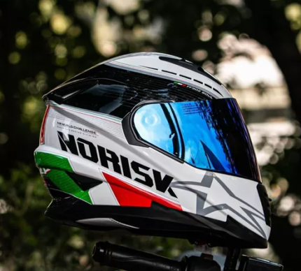 Capacete Norisk FF302 Grand Prix (Viseira Solar) Itália Preto/Branco Brilho
