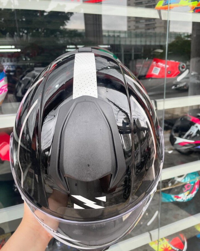 • Suas linhas aerodinâmicas foram inspiradas nos capacetes de alto desempenho e traz forma oval que diminui o arrasto e potencializa a circulação de ar, canalizadas pelas grandes entradas frontal e superior. Diretamente ligadas ao EPS de multidensidade, o ar que entra circula por canaletas até a saída traseira, tornando a pilotagem do motociclista mais confortável;