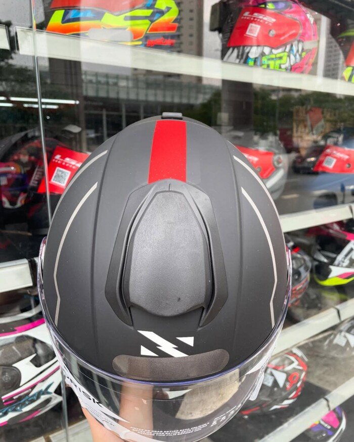 - Suas linhas aerodinâmicas foram inspiradas nos capacetes de alto desempenho e traz forma oval que diminui o arrasto e potencializa a circulação de ar, canalizadas pelas grandes entradas frontal e superior. Diretamente ligadas ao EPS de multidensidade, o ar que entra circula por canaletas até a saída traseira, tornando a pilotagem do motociclista mais confortável;
