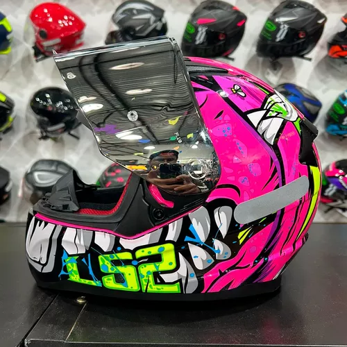 Capacete LS2 F353 Badas Rosa Pink Tribal + Viseira Espelhada