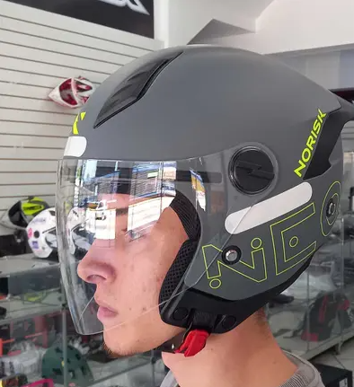 A viseira do Capacete Norisk Razor é de 2mm recebe tratamento UV e anti-risco para maior vida útil. O sistema de troca de viseira é muito simples e rápido, visando a praticidade que o motociclista precisa diariamente. Pensando sempre na maior segurança e conforto, a forração removível e lavável recebe inserções refletivas e tratamento antialérgico. O Capacete Norisk Razor tem bavete removível, narigueira alta e fecho micrométrico de fácil acesso mesmo com luva.